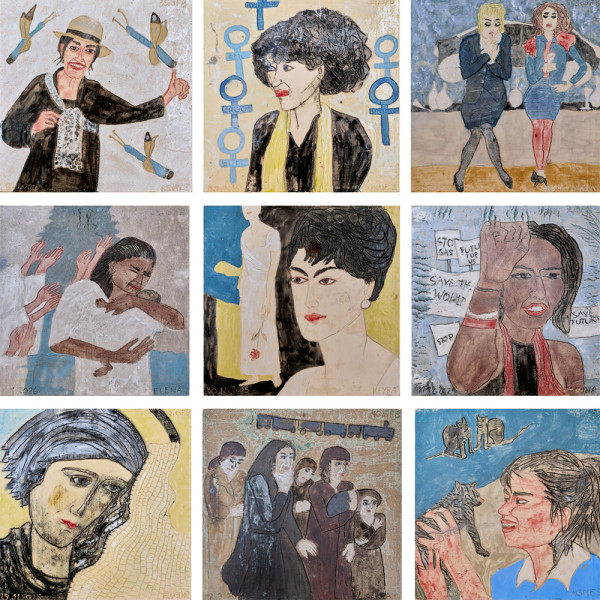 In diesem Winter sind in der Grösse der Kleinen Szenen bisher 48 Bilder entstanden, die Charlotte Seidl als Reihe „gesammelte Frauenbilder“ nennt und die Porträts in Keramik unterschiedlicher Frauentypen sind – Prominente und Unbekannte – je nach dem Eindruck, den sie bei Charlotte hinterlassen.